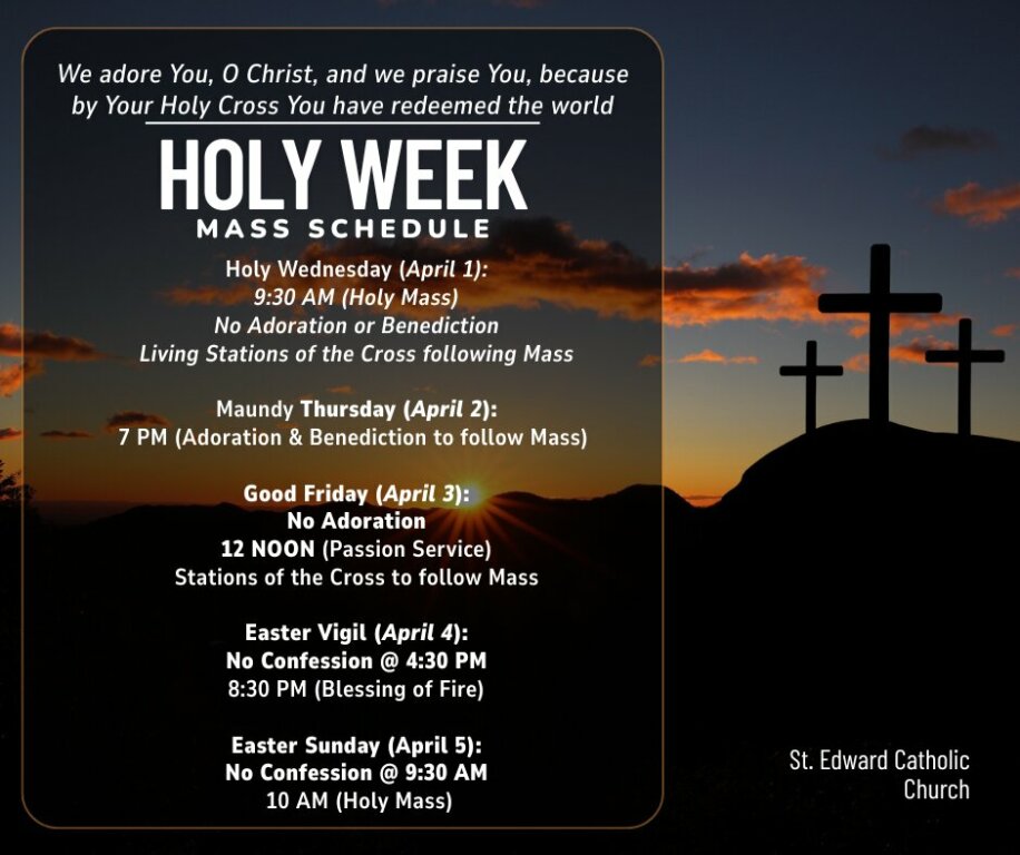 St. Edward is a welcoming Catholic community centered on the Eucharist, striving to live and to share the good news and to grow in dicipleship with the Lord.