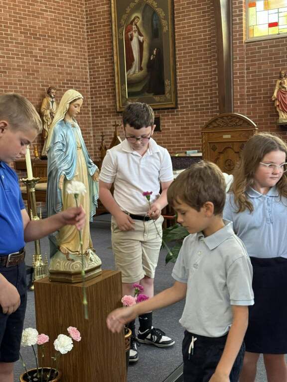 and prayed the Rosary with each grade presenting a petition for prayer.